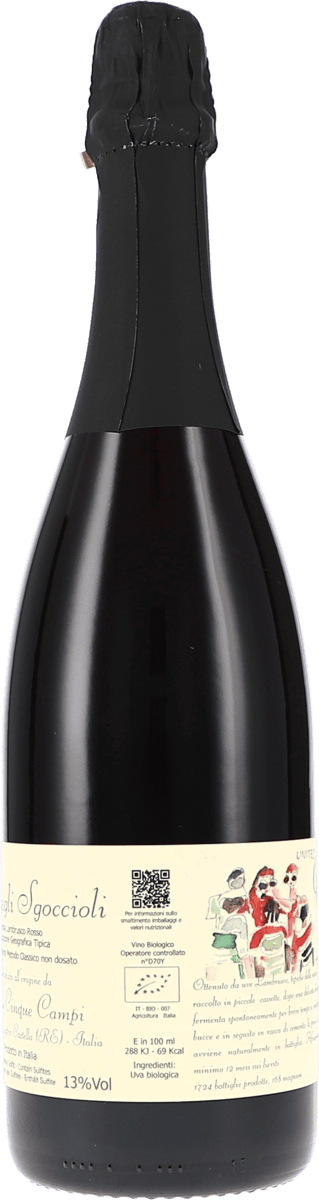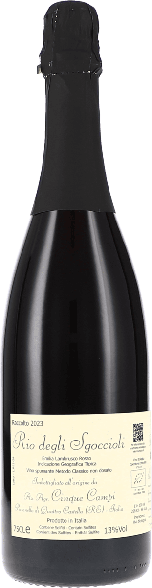Cinque Campi Rio degli Sgoccioli 2023 ist ein trockener Schaumwein hergestellt aus Lambrusco Trauben in der Region Emilia-Romagna in Italien.