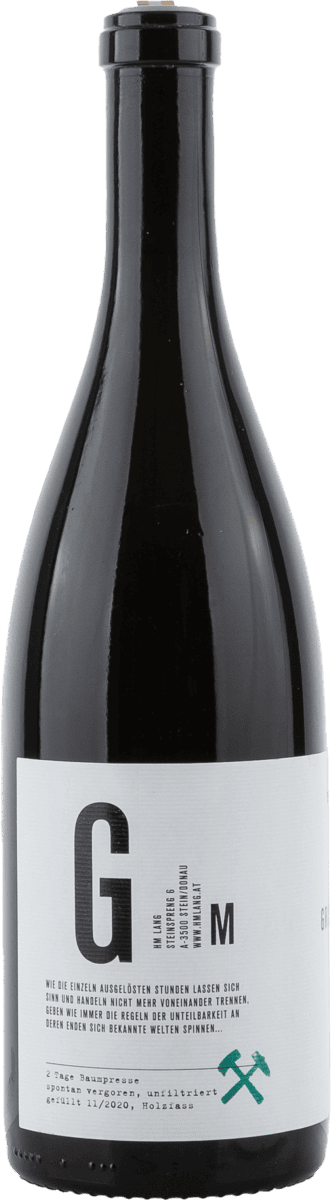 Der Grüne Veltliner steht in der Riede Steiner Schreck. Die Lage ist sehr steil, die Reben stehen auf kleinen Terrassen von rund vier bis fünf Metern Tiefe, die von Gföller Gneis und Granit geprägt sind. Die Reben (die Wurzeln, nicht die Stöcke) sind 100 Jahre alt und werden demeter-zertifiziert bewirtschaftet. Sie verfügen über eine 2,4 Meter hohe Laubwand. Die Lage befindet sich auf rund 320 Metern Seehöhe. Die Lese fand am 22. August rund 65 Tage nach der Blüte statt und damit so früh wie nie zuvor. Allerdings waren die Trauben physiologisch reif, und Markus Lang hat bei einem pH-Wert von 3,0 gelesen. Dieser frühe Lesezeitpunkt führte zu einem Alkoholgehalt von lediglich 11,5 Vol.-%. Der GV wurde über zwei Tage hinweg extrem langsam auf der selbst konzipierten 100-Tonnen-Baumpresse gepresst. Der Pressvorgang selbst läuft komplett reduktiv ab, danach aber hat der Saft Zeit zu bräunen, wird also bewusst einer Oxidation ausgesetzt. Der Saft wurde spontan vergoren und über zwei Jahre hinweg auf der Vollhefe im großen Stockinger Holzfass ausgebaut und unfiltriert im November 2020 mit 3,2 pH gefüllt. Beim Vergären setzte Lang 3 bis 5 % abgebeerte Trauben hinzu, die interzellulär (wie bei der macération carbonique) gären und so den Gärprozess trotz der konstanten 9 °C im Keller immer wieder neu anstoßen. Später wurde der Wein minimal geschwefelt.