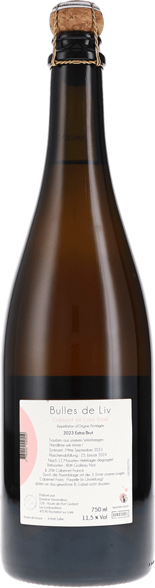Keywords: Liv Vincendeau Bulles de Liv, Crémant de Loire Rosé, Extra Brut AOP 2023 Loire Frankreich