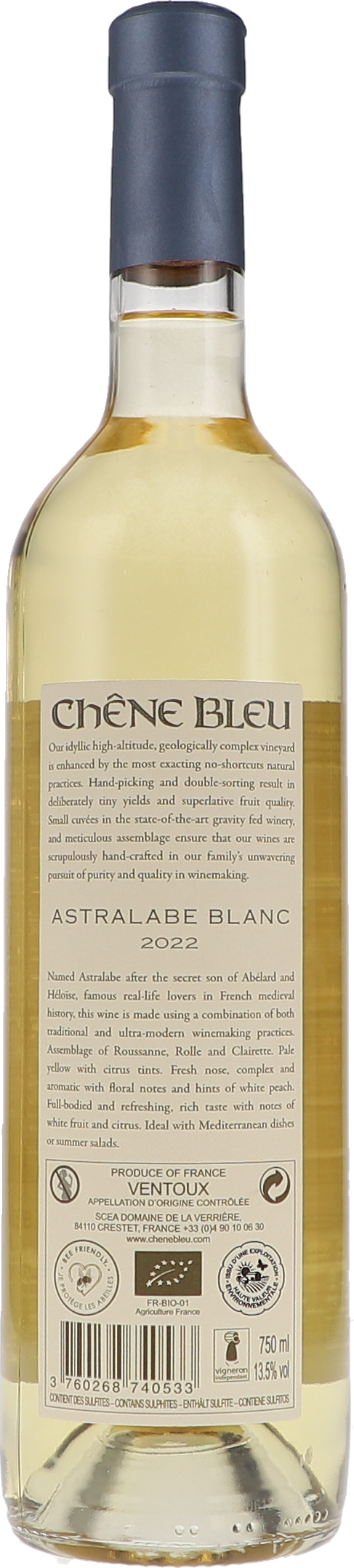 Keywords: Chêne Bleu Astralabe blanc AOC 2022 bio Southern-Rhône France