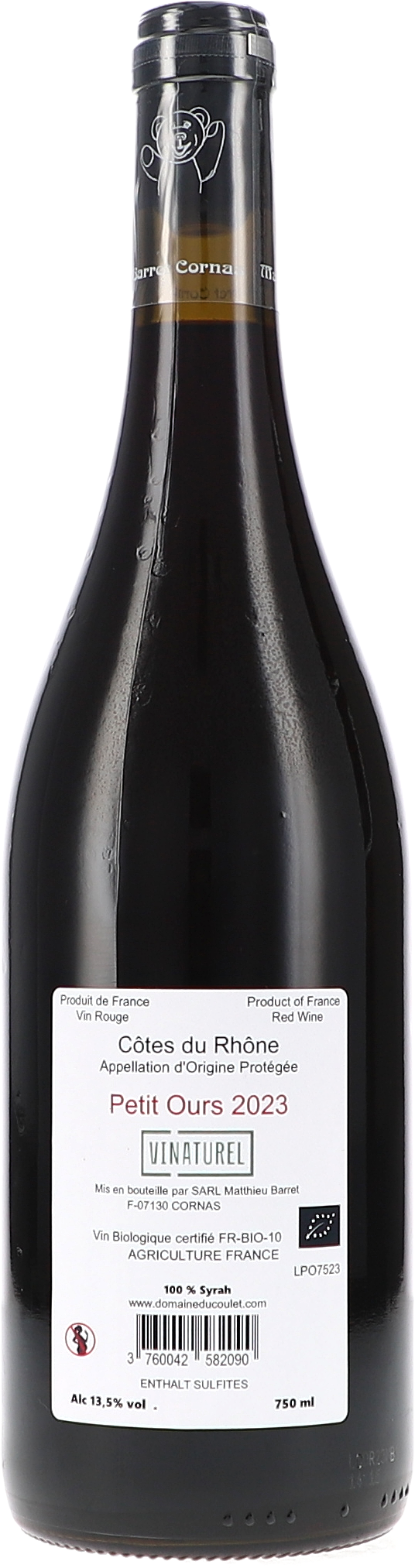 Keywords: Du Coulet Côtes Du Rhône “Petit Ours” rouge AOP 2023 bio Northern-Rhône France