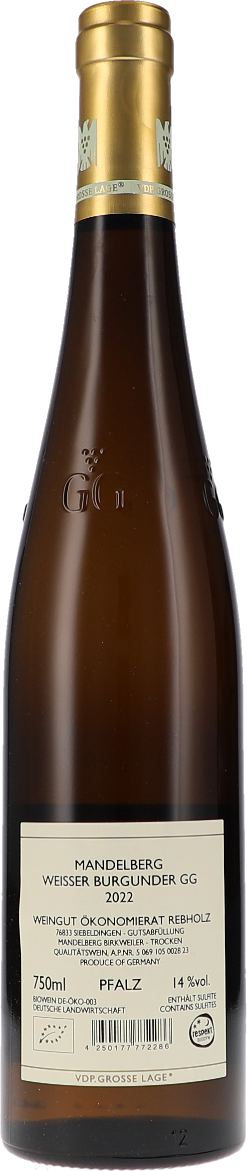 Keywords: Ökonomierat Rebholz Weisser Burgunder “Mandelberg” GG 2022 bio Pfalz Germany